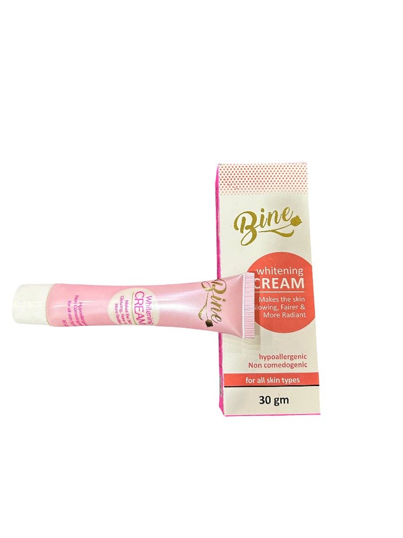 Glowing, Fairer, and Radiant Skin: Bine Whitening Cream is enriched with powerful ingredients that work to brighten the skin tone, making it visibly fairer and more radiant, leaving your complexion glowing with health.